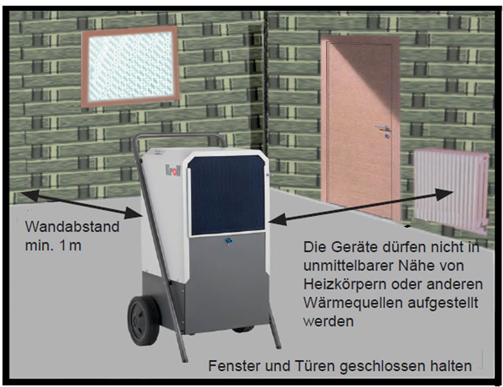 - Zur Luftentfeuchtung in allen Räumen, Kellern und Wohnräumen und gewerblichen Räumen (Ausnahme: Stallungen)