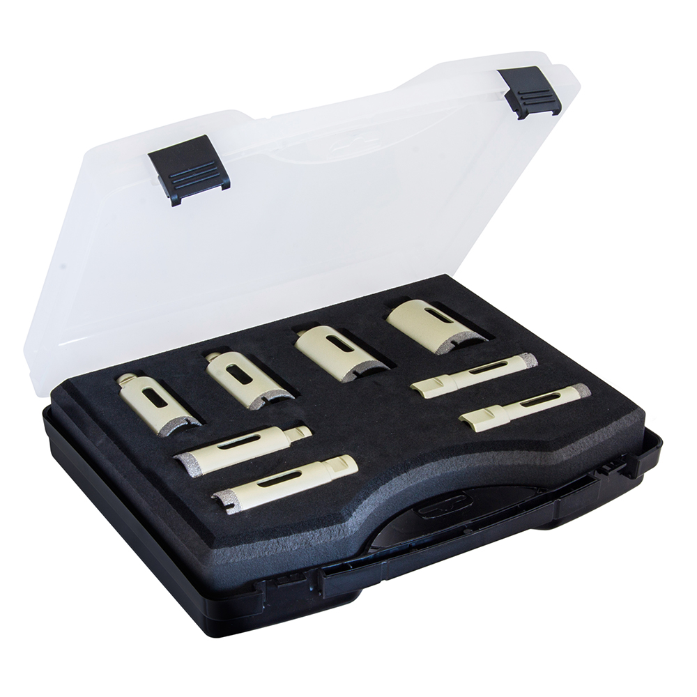 Fliesenbohrer und Bohrkronen clickandtools® ermöglichen Ihnen eine saubere und effektive Bohrung auf Granit, Steinplatten, Feinsteinzeug, Keramik und Fliesen. Profitieren Sie von diesen professionellen Diamantwerkzeugen bei Ihrer Arbeit und sparen Sie in Zukunft Zeit und Geld durch eine lange Standzeit.